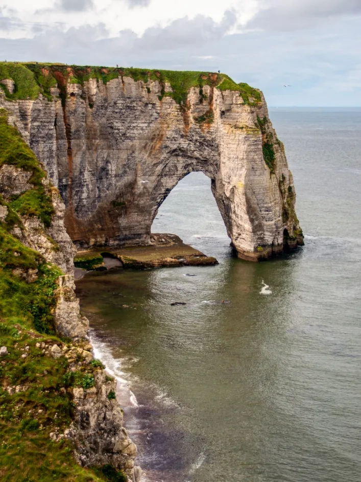 Admire la fameuse falaise en forme de trompe d’éléphant qui plonge dans la mer, et laisse-toi charmer par les superbes jardins d’Étretat.
